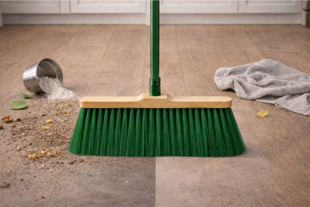 Metla ne raznaša umazanije, temveč jo učinkovito zbere na enem mestu.